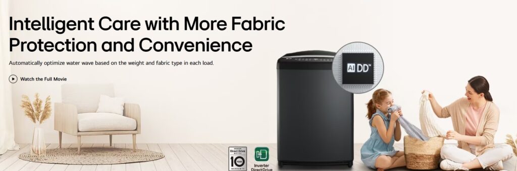 LG 9 Kg, 5 Star, AI direct drive technology, steam wash for allergy removal, fully automatic top loading washing machine (THD09SPM) | ₹ 27,990 | 9 किलोग्राम की वॉशिंग मशीन, जिसमें एआई डायरेक्ट ड्राइव, स्टीम वॉश, इन-बिल्ट हीटर और बेहतर फैब्रिक सुरक्षा के लिए एलर्जी केयर की सुविधा है